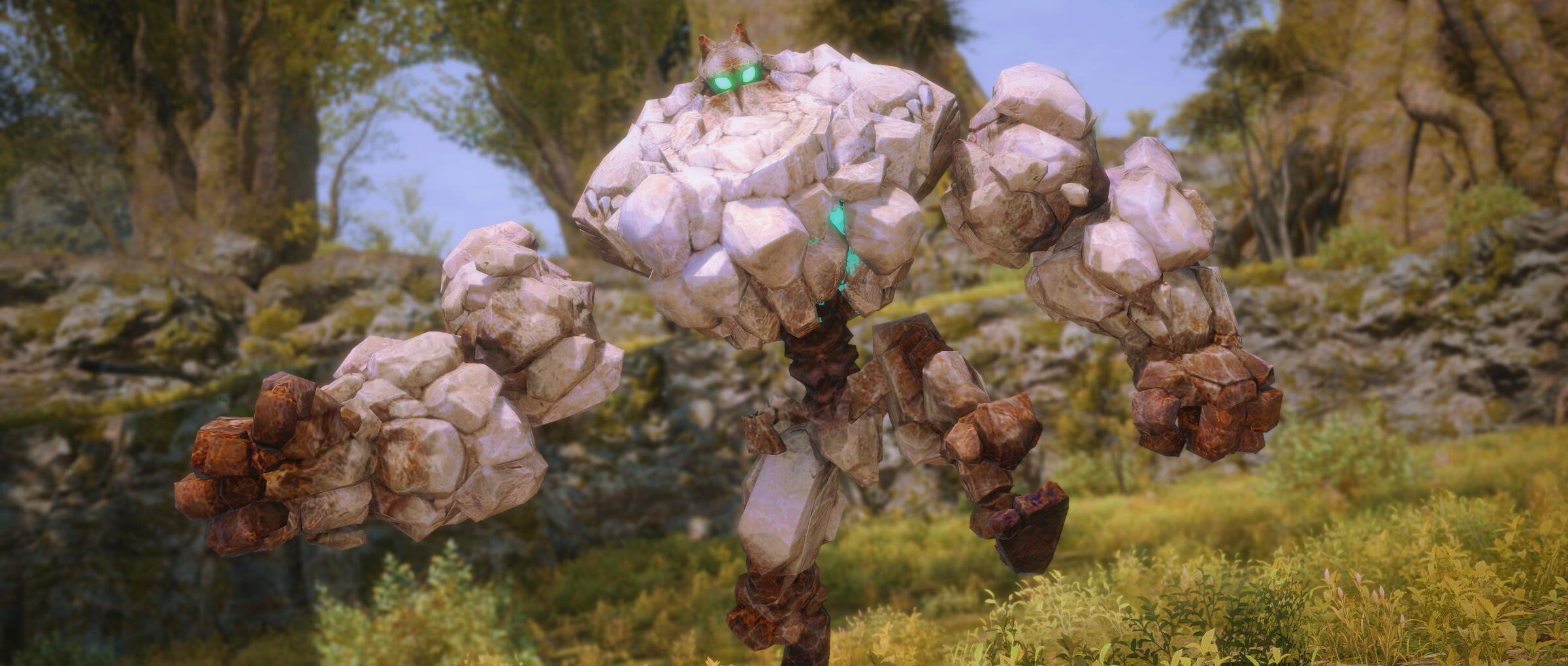 The first guardian of the forest appeared suddenly one day, dancing somewhere outside the village. Gazardiel studied the strange scene, joined later by Aria, Lumoh, Rivian, and Tamashi. They soon found out that dancing in front of the golem created a strange effect. The golem would mimic the movements of the one dancing before it. They also found out that the golem would judge the dance performed, rejecting the first dances it was shown. It was Lumoh that finally won its favor, and the golem bounded off deeper into the forest.The villagers followed after, finding the golem dancing in the shallow waters. After Aria just barely failed to win the golem over by doing a somersault instead of a back flip (she was wearing a skirt), Gaz danced for the golem complete with a real backflip (he was not wearing a skirt) and won the golem over the second time, drenching the others as the golem copied the flip, spraying water everywhere.The golem retreated once again, leading them to the third and final location. This time, it was not dancing--it was waiting. The golem walked through a wall of briars that was in actuality an illusion to hide what was further inside.It was here that they found a hidden temple. The doors were sealed shut, but the grounds were open to them now. Symbols of the Twelve were all over. The importance of this location was unclear as of now, but more trials awaited them. Perhaps before long they would learn more about this hidden temple.